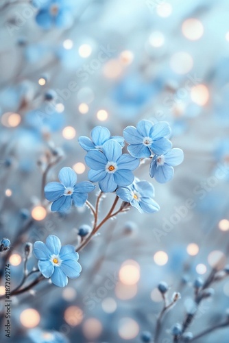 © Nikita44, Fototapeta premium Gentle glowing bokeh lights scattered across vibrant flowers, blending softly into the background for a serene visual, comic book style