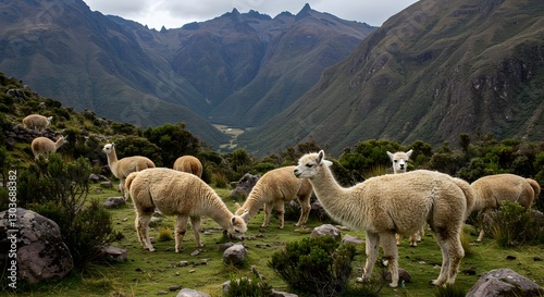 Naklejka premium Gentle Grazers The Alpaca in Andean Highlands