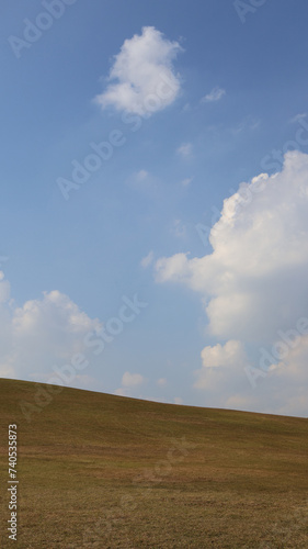 Fototapeta premium Gentle Hill under Bright Blue Sky and White Clouds