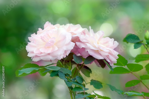 © Tatiana Belova, Fototapeta premium Gentle light pink roses on blurred background