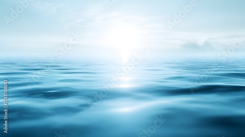 Fototapeta premium Gentle ocean waves reflect a bright, hazy sky.