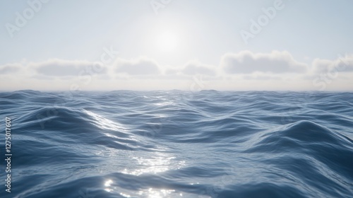 © Biancaart, Obraz premium Gentle Ocean Waves Under a Cloudy Sky
