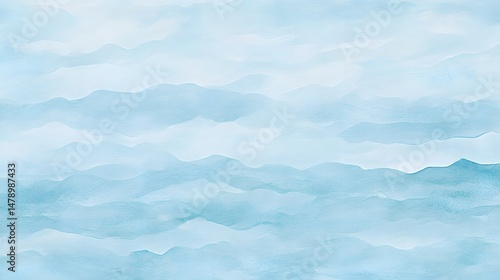 Fototapeta premium Gentle, pastel blue mountain range, watercolor painting style.