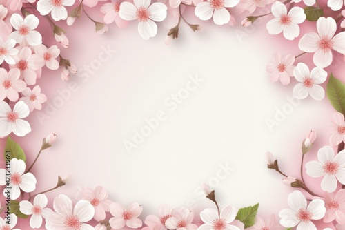 © nsit0108, Fototapeta premium Gentle pink cherry blossoms create a delicate frame on a soft pink background, perfect for spring themed designs