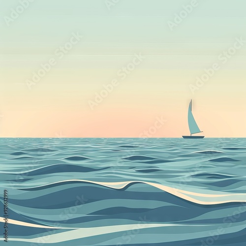 Obraz premium Gentle, rolling ocean waves with a simple horizon and a minimalistic sailboat...