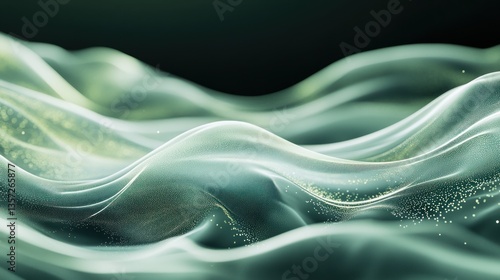 Obraz premium Gentle Serenity Abstract Wave Pattern with Gradient Background, Green Flow...