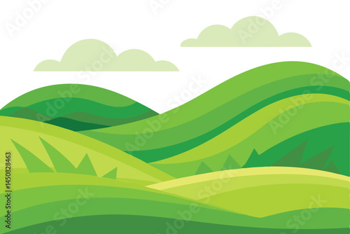 © Jannatul, Fototapeta premium Gentle slopes cascade beneath soft clouds within this simple landscape representation on a transparent background