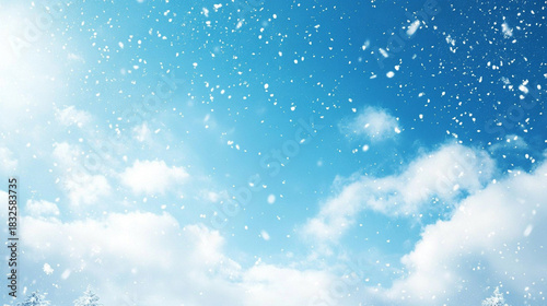 Fototapeta premium Gentle snowfall against a clear blue winter sky, evoking calm, serenity,...