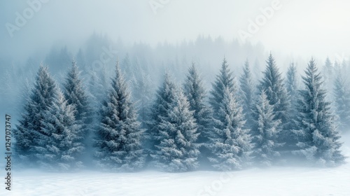 © The prominence, Fototapeta premium Gentle snowfall covering pine trees