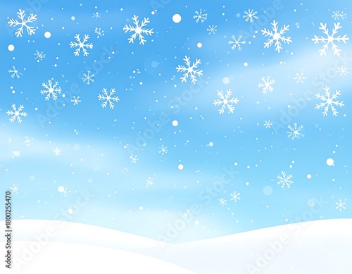 © Fhang, Naklejka premium Gentle snowfall landscape with snow-covered ground and a light blue background