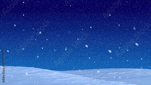 Fototapeta premium Gentle snowfall over serene snow-covered landscape at night