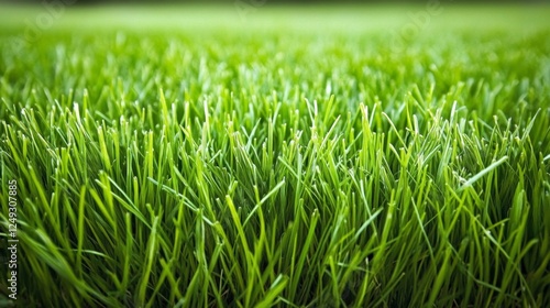 Fototapeta premium Gentle sunlight illuminating closeup of lush green grass outdoor garden...