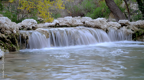 © artzone, Obraz premium Gentle Waterfall Cascading Over Rocks in a Peaceful Creekside Setting