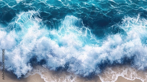 Fototapeta premium Gentle waves lapping at the shore under a clear blue sky.