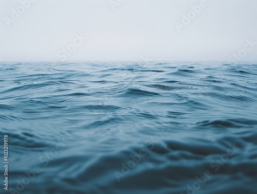 Naklejka premium Gentle waves of the ocean stretch into the horizon under a hazy sky at dawn,...