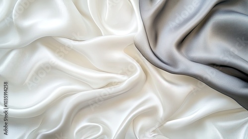 Fototapeta premium Gentle white and gray satin texture, smoothly blurred for a modern and sophisticated fabric design, perfect for chic backgrounds