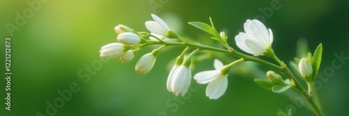 © boxs, Fototapeta premium Gentle white blooms start to emerge on the broom-like stem, stem, growth, gentle
