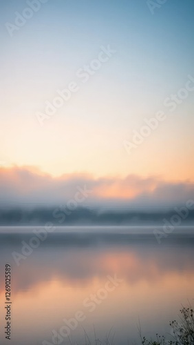 Naklejka premium Gentle wisps of fog dance across a serene lake at dawn, nature, mist