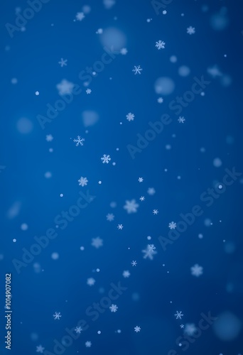 © Mishkat Uddin Rahat, Fototapeta premium Gently Falling Snowflakes on Cold Blue Gradient Illuminated by Soft Light Reflections