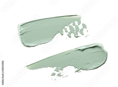 Fototapeta premium Gently green strokes and texture of face cream or acrylic paint isolated on white background