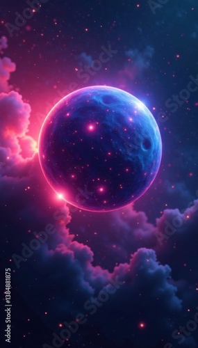 Obraz premium Gently pulsing orb floats amidst nebulae glow, galaxy, floating object, space...
