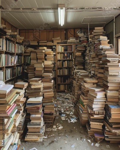 © Kanisorn, Fototapeta premium Gently used books offer affordable reading options and promote recycling and sustainability.