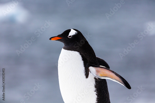 Naklejka premium Gentoo penguin in the ice and snow of Antarctica
