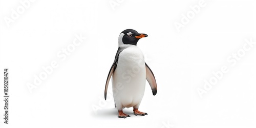Fototapeta premium Gentoo penguin on a white background, illustrating species survival in harsh environments