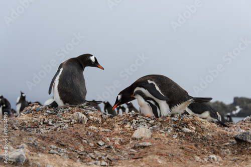 Fototapeta premium Gentoo penguin put stone in nest