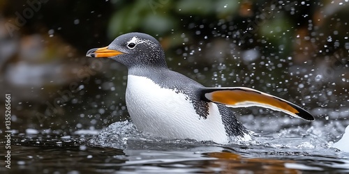 Fototapeta premium Gentoo Penguin Running Water Splash.