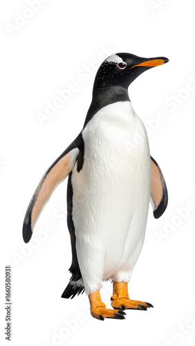 Fototapeta premium Gentoo penguin standing and looking up with transparent background