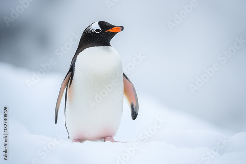 © AIrism Stock, Naklejka premium Gentoo penguin standing out in the wild arctic landscape of Antarctica