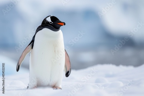 © Papukos, Naklejka premium Gentoo penguin walking in Antarctic snow