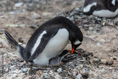 © Alexey Seafarer, Naklejka premium Gentoo penguin with chicks