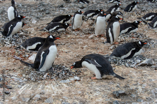 © Alexey Seafarer, Naklejka premium Gentoo penguin with chicks