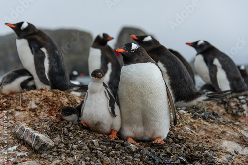 © Alexey Seafarer, Obraz premium Gentoo penguin with chicks