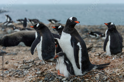 Obraz premium Gentoo penguine with chicks