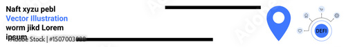 Obraz premium Geolocation marker beside a circular network diagram with connected nodes and...