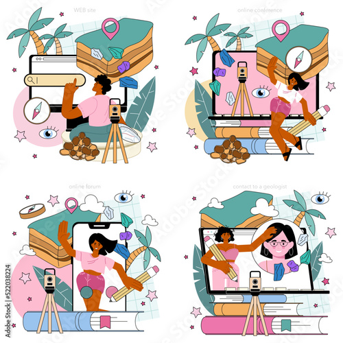 Obraz premium Geology online service or platform set. Scientist study structure, evolution