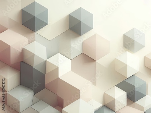 Obraz premium Geometric abstract background with pastel-colored cubes and hexagons arranged...