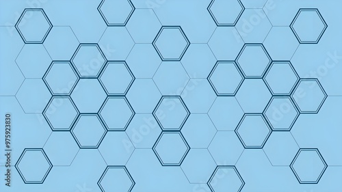 Fototapeta premium Geometric abstract background with simple light blue hexagonal shapes on a soft minimalistic surface ideal for technology or scientific themes in digital designs.