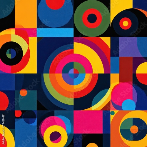 Obraz premium Geometric Abstract: Colorful Circles and Squares Composition