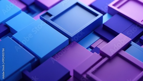 Obraz premium Geometric Abstraction: A captivating display of interlocking cubes in a gradient of cool blues and purples, creating a modern, abstract visual.