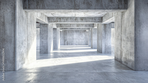 Obraz premium Geometric Architecture: Exploring the stark, yet captivating, simplicity of a concrete structure. This minimalist composition uses geometric shapes, light.