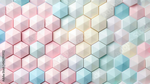 © NooPaew, Obraz premium Geometric background with hexagonal patterns in pastel colors