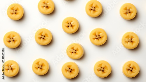 © Biggy, Fototapeta premium Geometric Banana Slices Pattern on White Background
