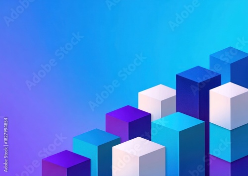 Obraz premium Geometric bar graph rising against gradient blue. Cubes indicate data in a...