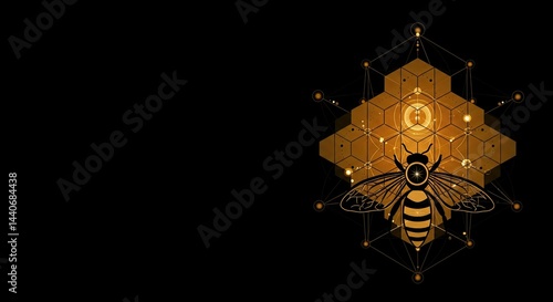 © Olesya, Naklejka premium Geometric bee on honeycomb. Apiculture and honey production. Modern poster for world bee day, banner for beekeeping shop, geometrical print for invitation or postcard design