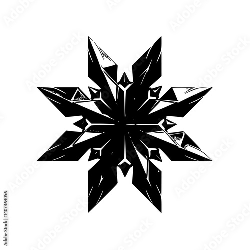 © MatandSterre, Obraz premium Geometric Black Snowflake on White Background