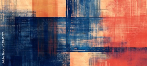 © Being Imaginative, Fototapeta premium Geometric Blue and Orange Diagonal Strips Background Featuring Abstract Patterns and Dynamic Aesthetic Design.